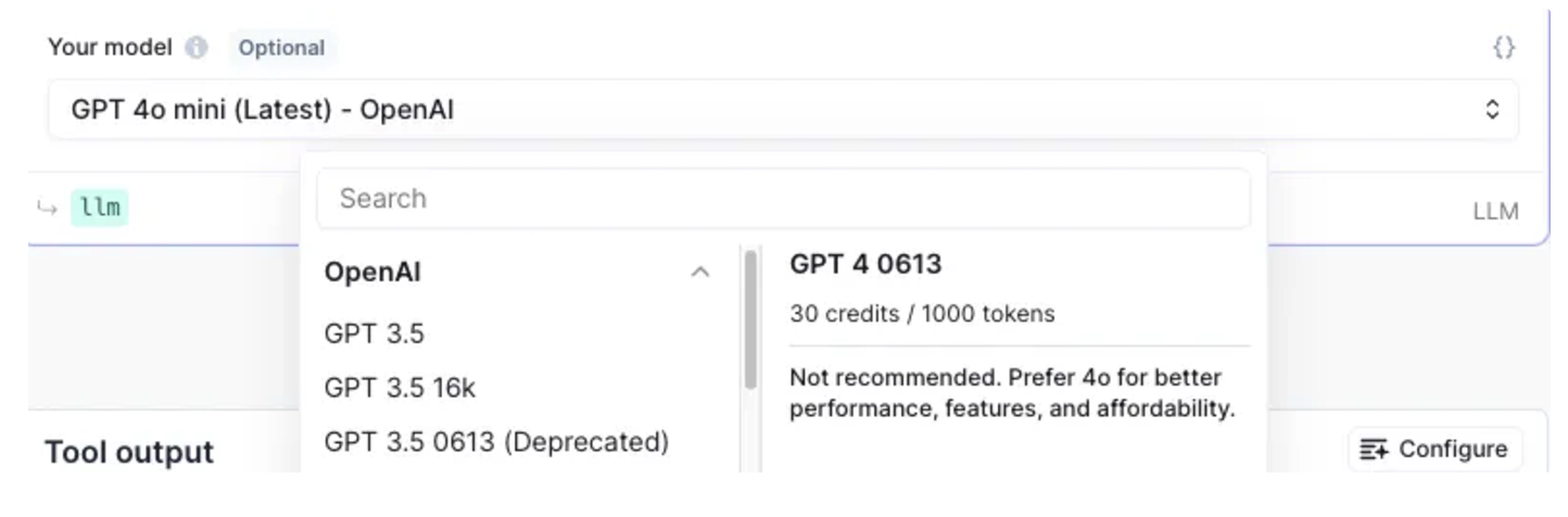 - This will open a pop-up that will show you how much each Tool cost, as well as your Agent LLM cost and the base run cost
